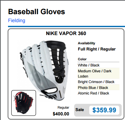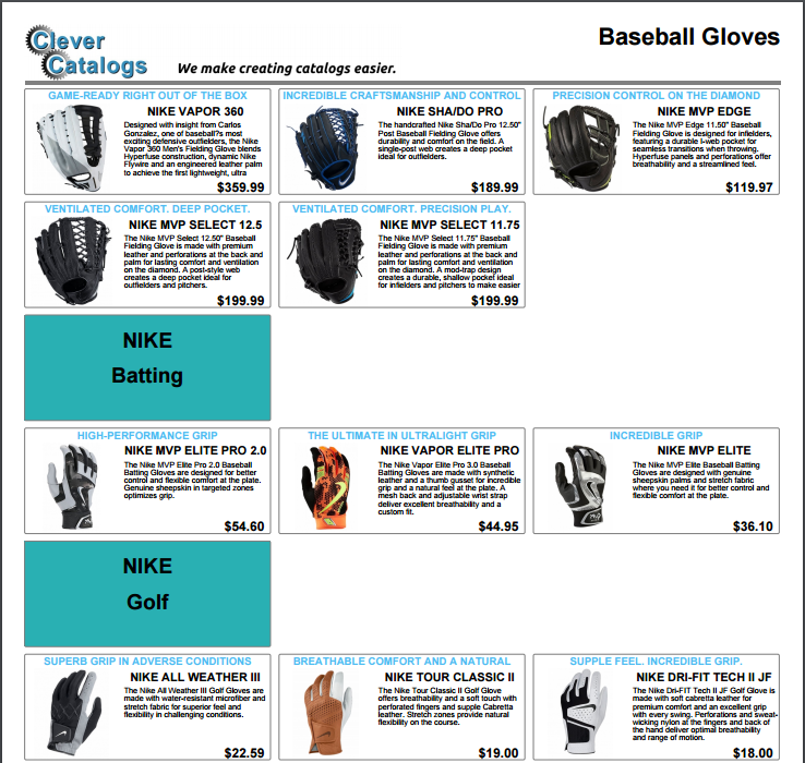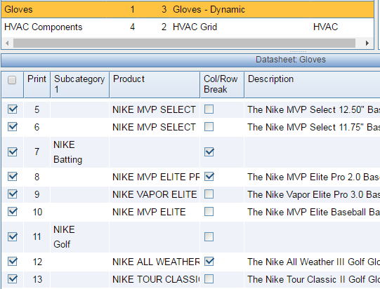 One additional feature has been used to create this look. A Column Break has been set to force the Product Layouts with the Subcategory text to print in the Left column, along with the Product Layout of the first product in that Subcategory. This is of course optional and you could allow the Product Layouts to print in their natural positions. |