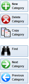 The bottom half of the Category Editor form is organized into four tabs. Three of these relate directly to the Data Editor. |
