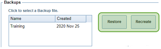 Backup files allow you to restore your data to an earlier date. We strongly recommend you backup your database at regular intervals. |