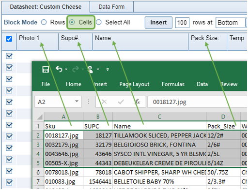 Next, select a block of cells in the Datasheet and Press Ctrl+V. |