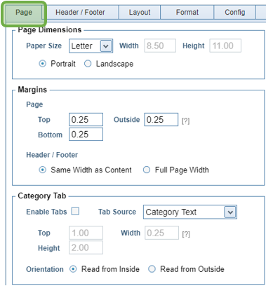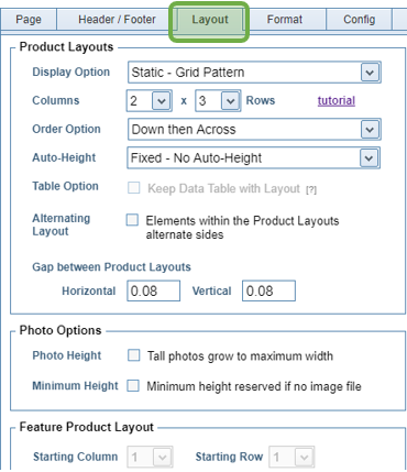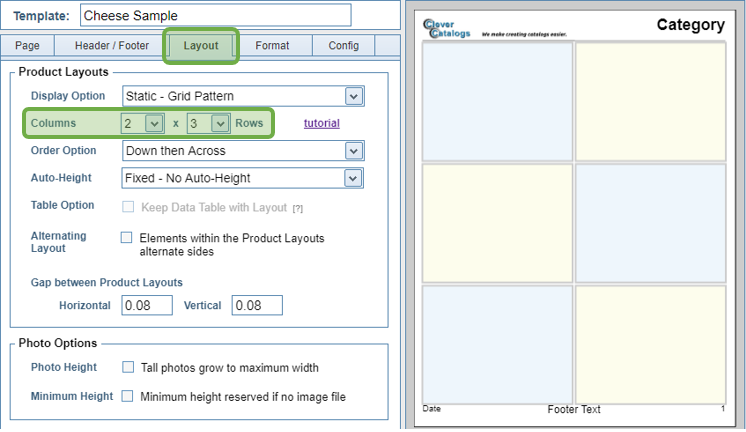 Page Setup is the first step in designing a template. The form will open to the Layout Tab, where most users will change the number of Columns and Rows. Those changes will be reflected immediately on the Design Pad on the right side of the screen. |